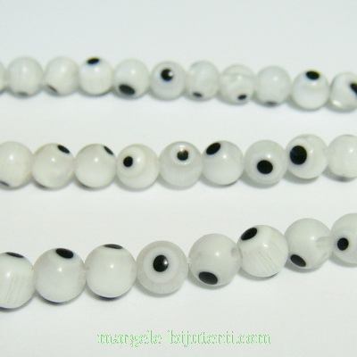Margele de sticla, Ochiul lui Horus, albe, 6mm, orificiu 1mm. Pretul se refera la 1 bucata.