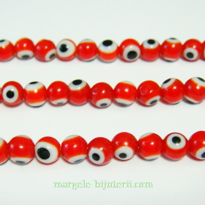 Margele de sticla, Ochiul lui Horus, rosii 6mm, orificiu 1mm. Pretul se refera la 1 bucata.