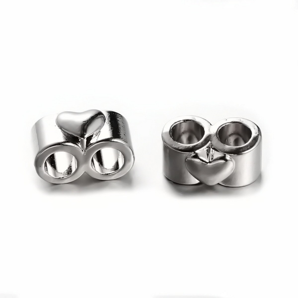 Distantier argintiu inchis, cu 2 orificii de 4mm, 15x9x8mm. Pretul se refera la 1 bucata.