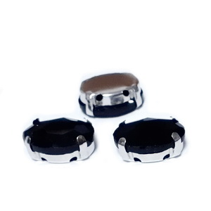 Cristale rhinestone, ovale, negre, in montura, 14x10x6.5mm 4 orificii pe dos