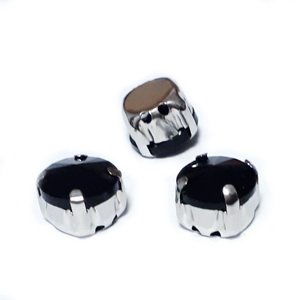Cristale rhinestone rotunde, negre, in montura, 9.5x6mm 4 orificii pe dos