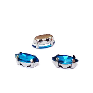 Cristale rhinestone, ochi de cal, bleu, in montura, 8x4x4mm