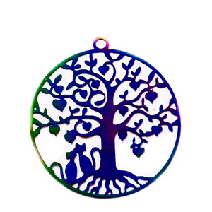 Pandantiv otel inoxidabil 201 IP(placat cu ioni) multicolor, copacul vietii cu 2 pisici, 34x30x0.4mm 1 buc