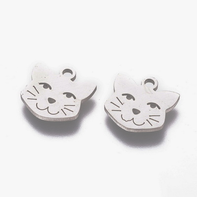 Pandantiv otel inoxidabil, gravat, cap de pisica 12x12x1.1mm 1 buc