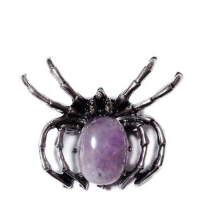 Pandantiv/brosa argintiu antichizat cu cabochon ametist, paianjen 60x50mm 1 buc