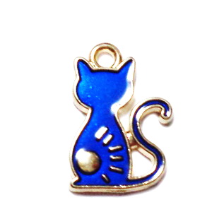 Pandantiv auriu cu albastru, emailat, pisica 20x12x1.5mm 1 buc