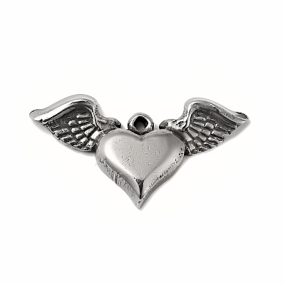 Pandantiv otel inoxidabil 304, argintiu antic, inima cu aripi, 15x28x4mm 1 buc