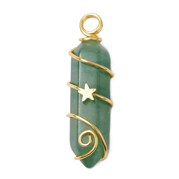 Pandantiv aventurin cu sarma modelaj aurie si stea, 37x10mm 1 buc