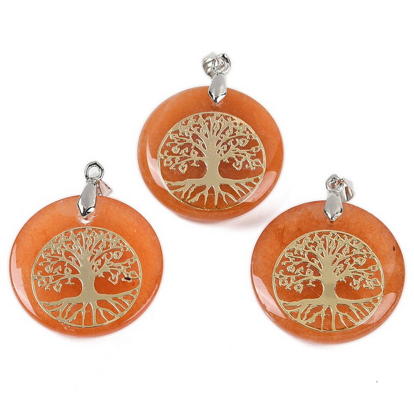 Pandantiv aventurin rosu, rotund 30x25x7mm, cu imprimeu auriu copacul vietii 1 buc