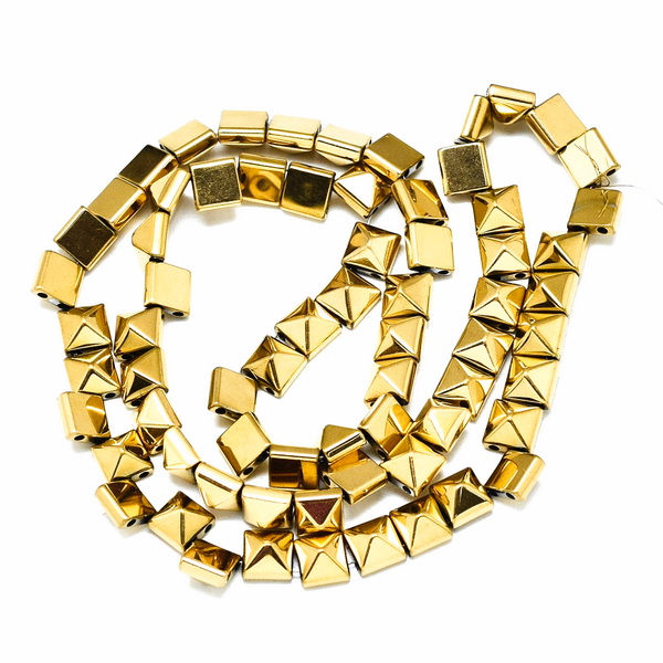 Hematit patrat cu 2 orificii, electroplacare cu aur 18K, 6x6x64mm-sir 68 buc 1 buc