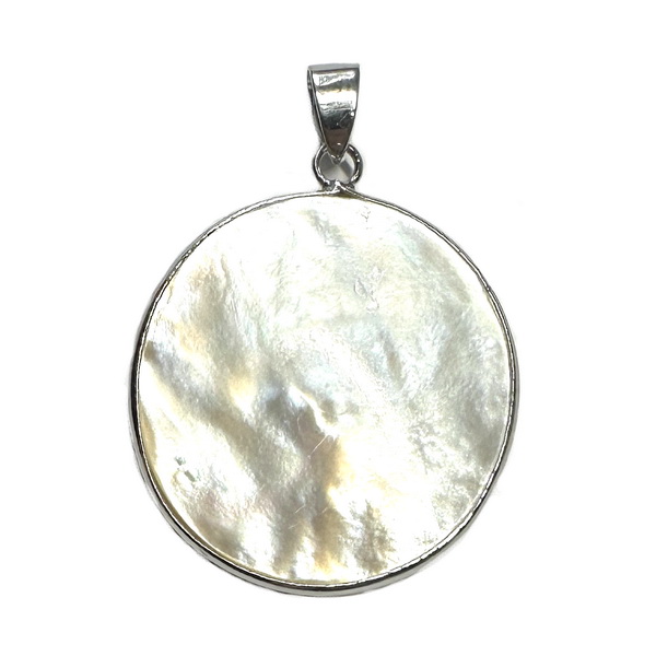 Pandantiv sidef alb pe baza argintiu inchis, 40x31x5mm 1 buc