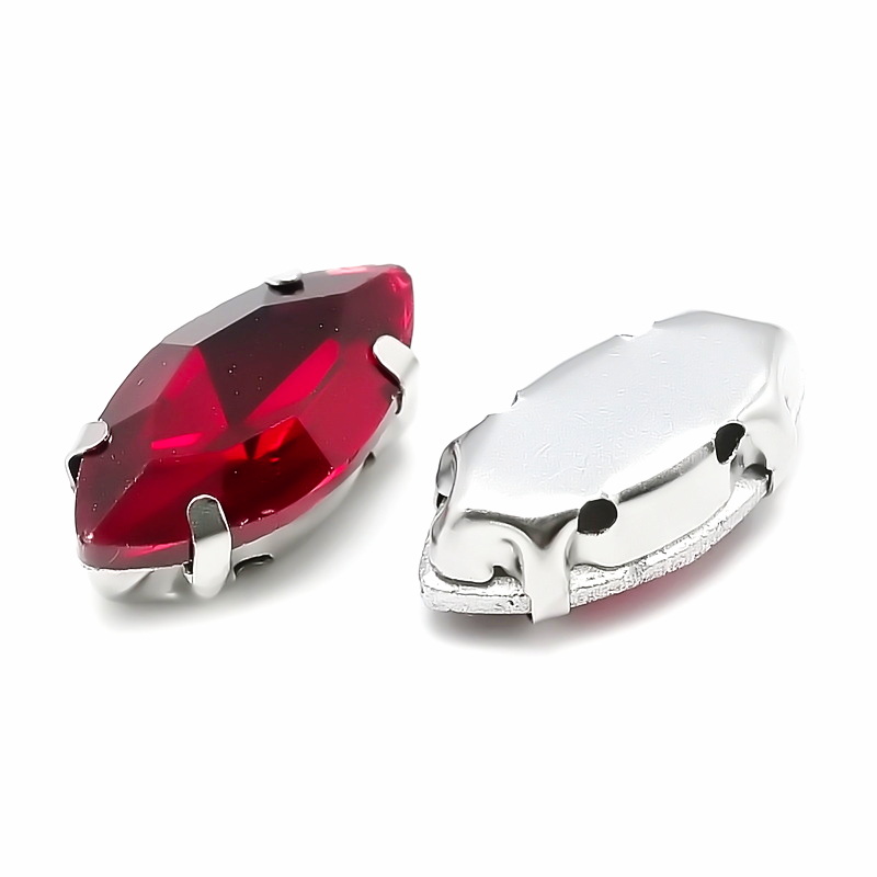Cristale rhinestone, ochi de cal, rosu inchis, in montura metalica, 15x4x4mm