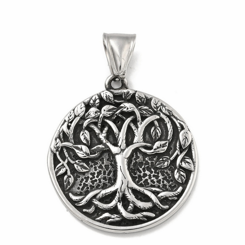 Pandantiv otel inoxidabil 316, antichizat, cu copacul vietii, 34x30x2.5mm 1 buc