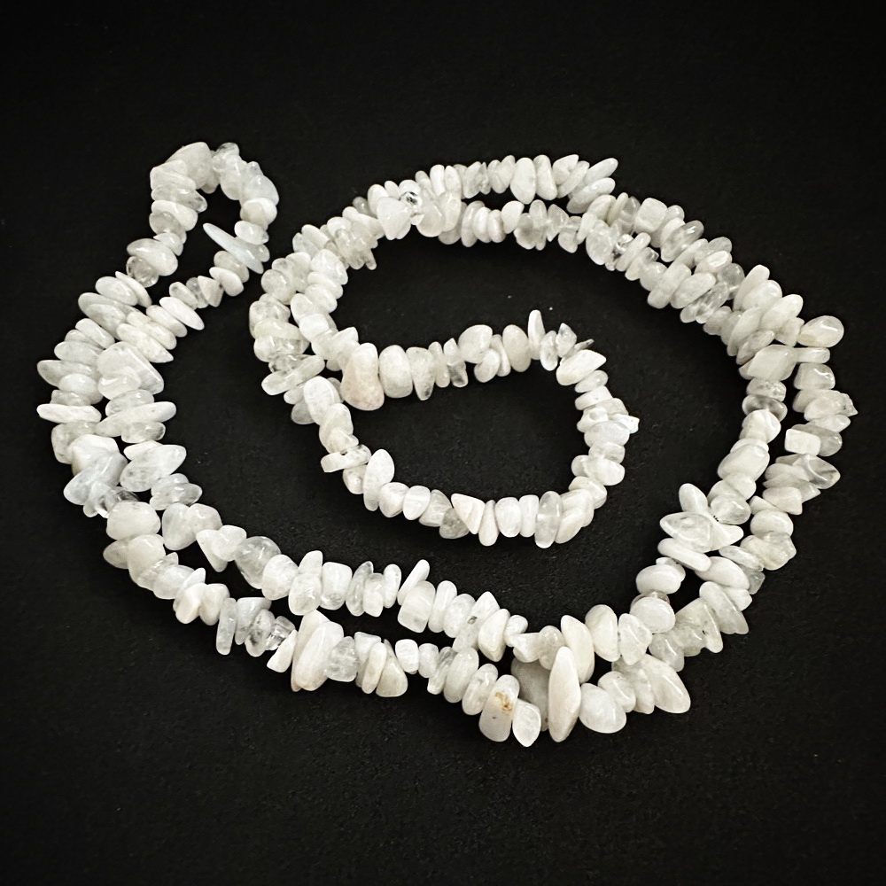 Chips piatra lunii alb 6~12mm-sir 84cm 1 buc