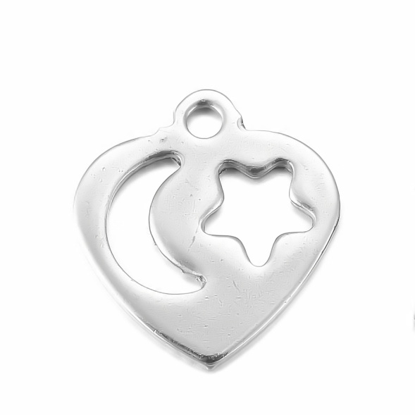 Pandantiv otel inoxidabil 201, inima cu stea si luna, 12x11x0.8mm 1 buc