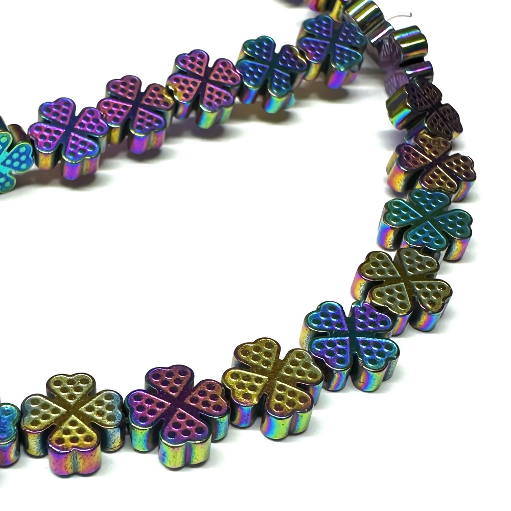 Margele hematit, placate multicolor, trifoi cu 4 foi, 8x8x2.5mm-sir 49 buc 1 buc