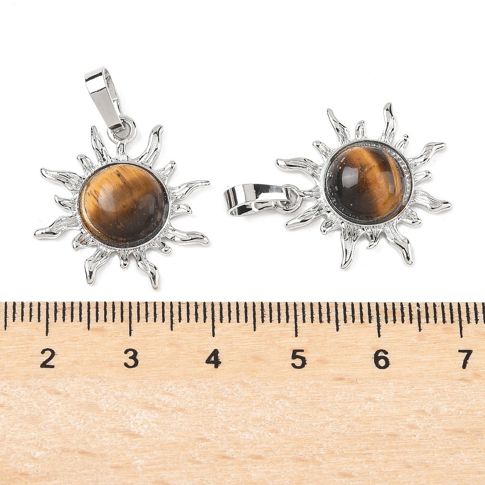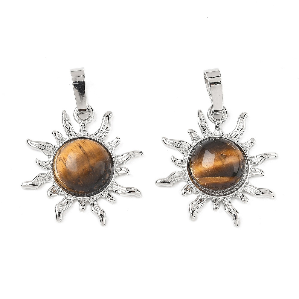 Pandantiv ochi de tigru pe baza metalica, soare 23x22x5.5mm 1 buc