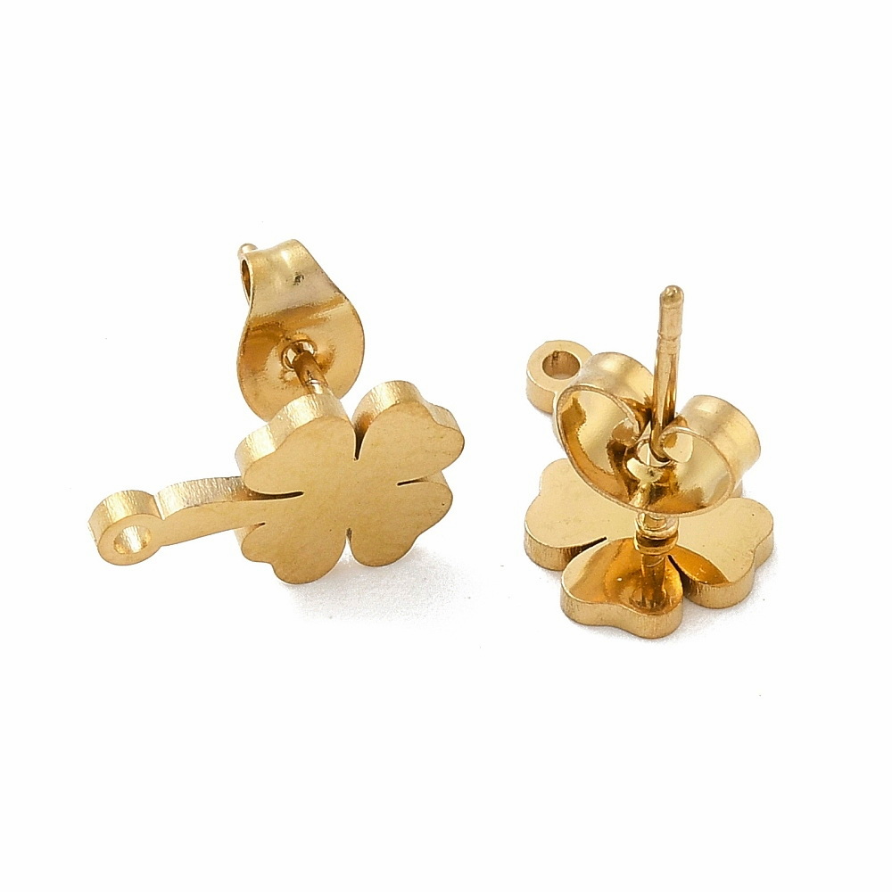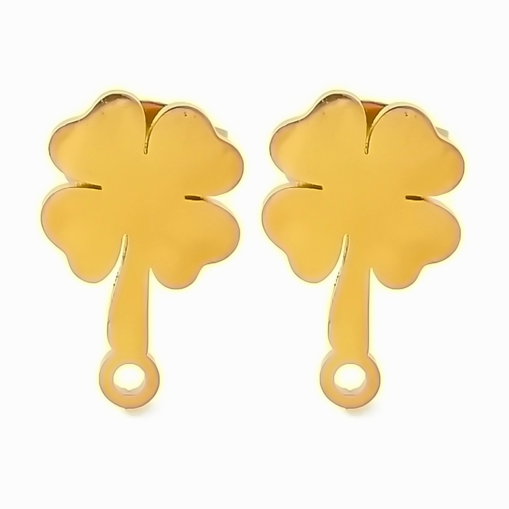 Tortite cercei otel inoxidabil 304 auriu IP(placat cu ioni), trifoi cu 4 foi 13x8mm 2 buc