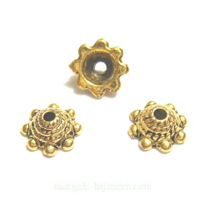 Capacel, stil tibetan, auriu antic,9mm in diametru, 3.5mm grosime, orificiu: 1mm. Pretul se refera la 1 bucata.