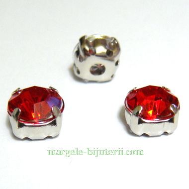Imitatie cristale, plastic rosu, de cusut, 8x8x6mm 1 buc